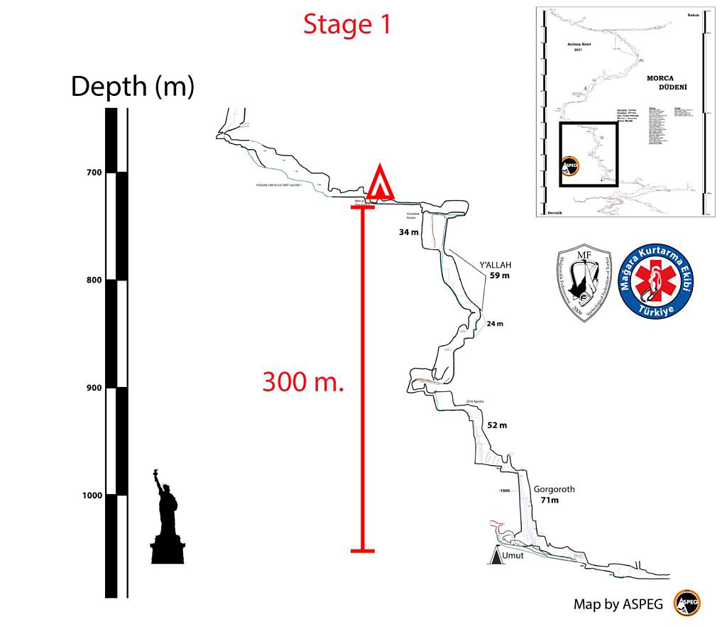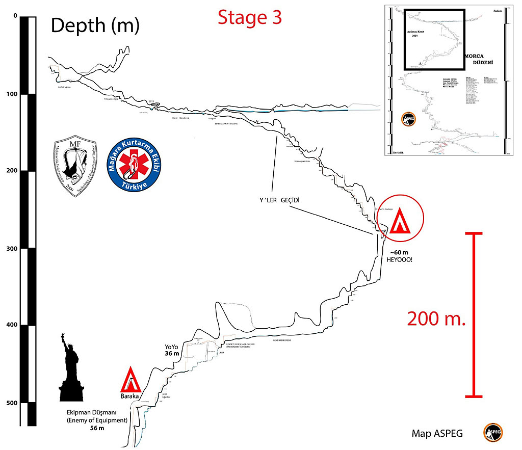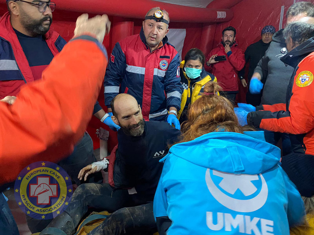 We extend our best wishes to the casualty for a rapid and complete recovery following essential hospital treatment and congratulate all the cave rescuers in the European teams who completed medical treatment at significant depth and a very impressive, technical extraction of the casualty. There were very technical and long, vertical hauls to rig and operate, combined with constricted passageways to prepare on the way back to the surface from very deep underground.
