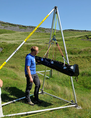 In addition to Lyon Equipment demonstrating new stretchers, rigging, and a new Quadpod, Hywel Jopling had a display of various rescue stretchers – including a ‘large’ bariatric stretcher,which would certainly test underground anchors if used to it’s capacity. Starless River and SP Medical Supplies were also in attendance throughout the weekend allowing people to inspect and purchase new kit.
