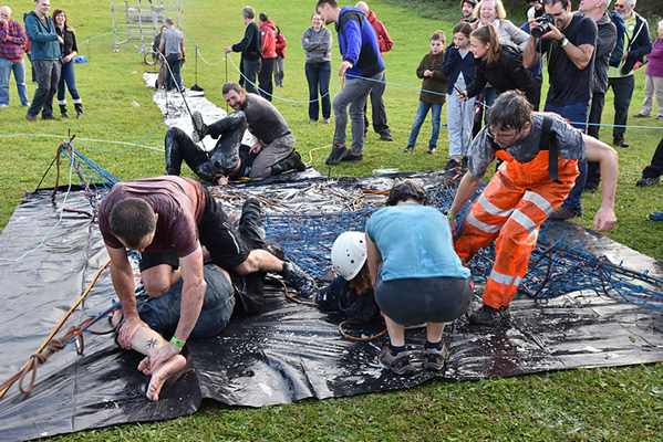 In the evenings it was a great opportunity to socialise and meet cavers from around the country and overseas. On the Saturday evening 4 brave (mad?) teams signed up for the Wessex Challenge – a team based obstacle course with attitude!